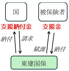 みなさんが納めた「子ども・子育て支援金」は、「後期高齢者支援金」「介護納付金」と同様に東建国保から国へ納めます。。